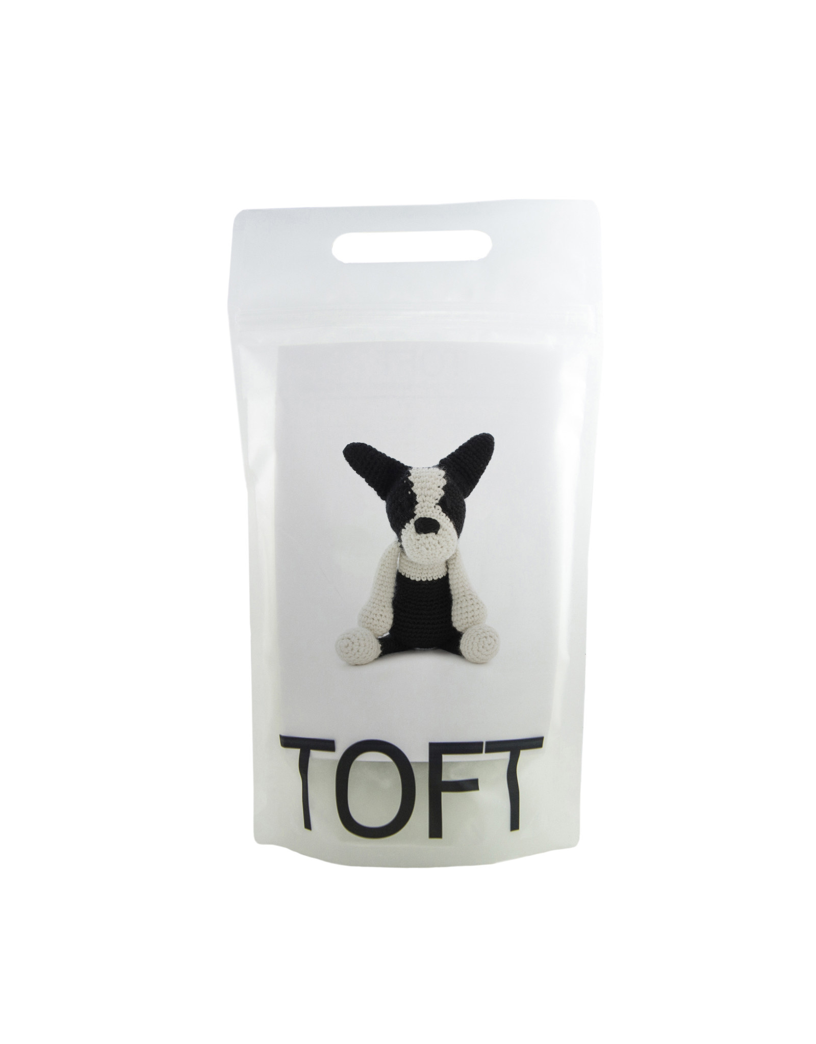THIS KIT CONTAINS: 50g of DK yarn in 'Black', 50g of DK yarn in 'Cream', toy stuffing, 3mm crochet hook, wool needle, and a postcard pattern inside a reusable TOFT project bag.
