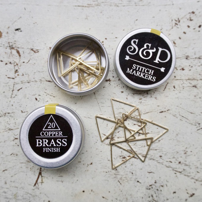 These cute copper stitch markers have a bright brass coloured finish and unique triangle shape that's easy to transfer needle to needle. They come in a handy screw top tin to keep your notions pouch neat and tidy.
