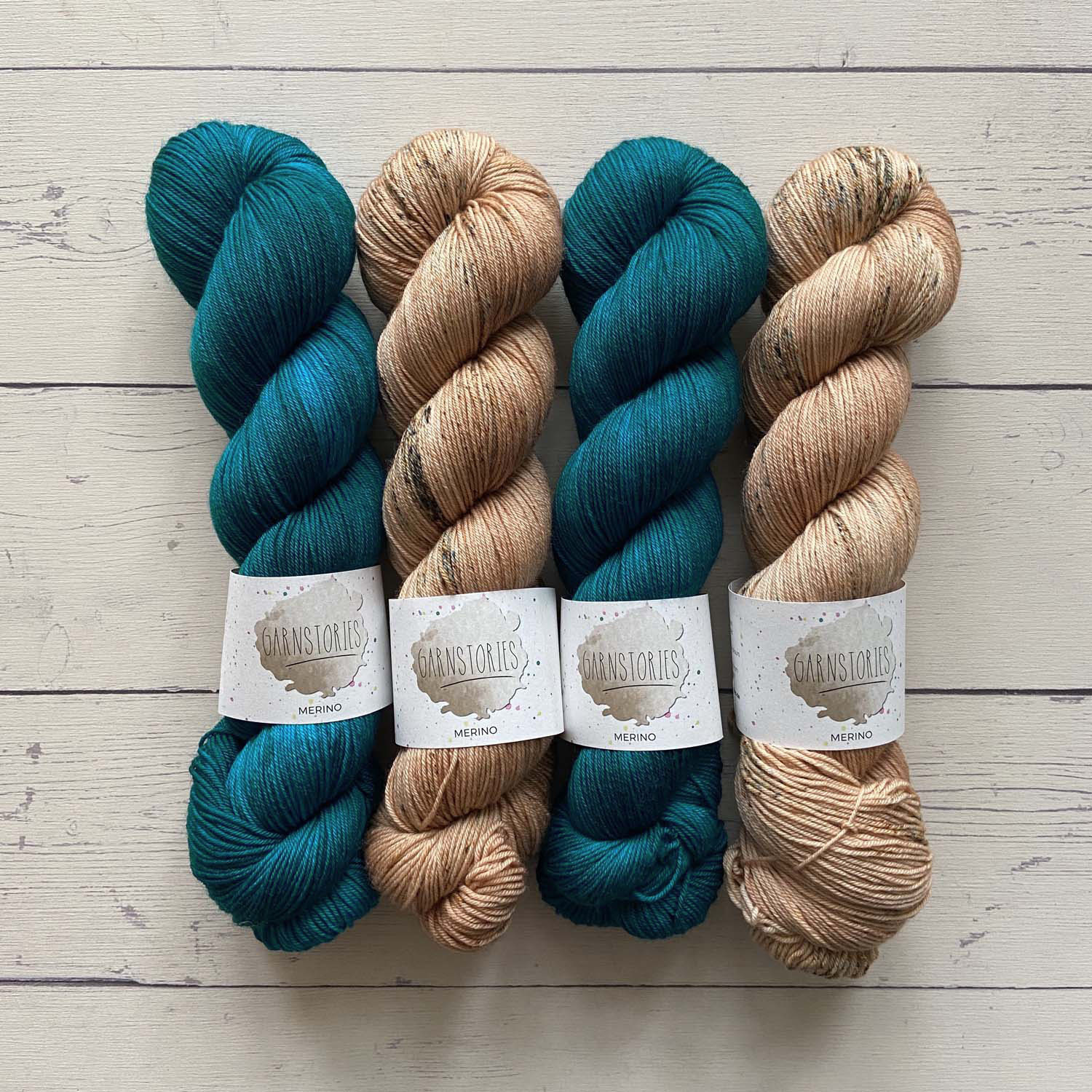 This “Two Plus Two” kit from Stephen & Penelope was selected to work well with multiple four skein Westknits patterns, including Mosaic Musings, Tree Fern, Rockefeller, Chrysler, Starflake, and Wonky Starfish.