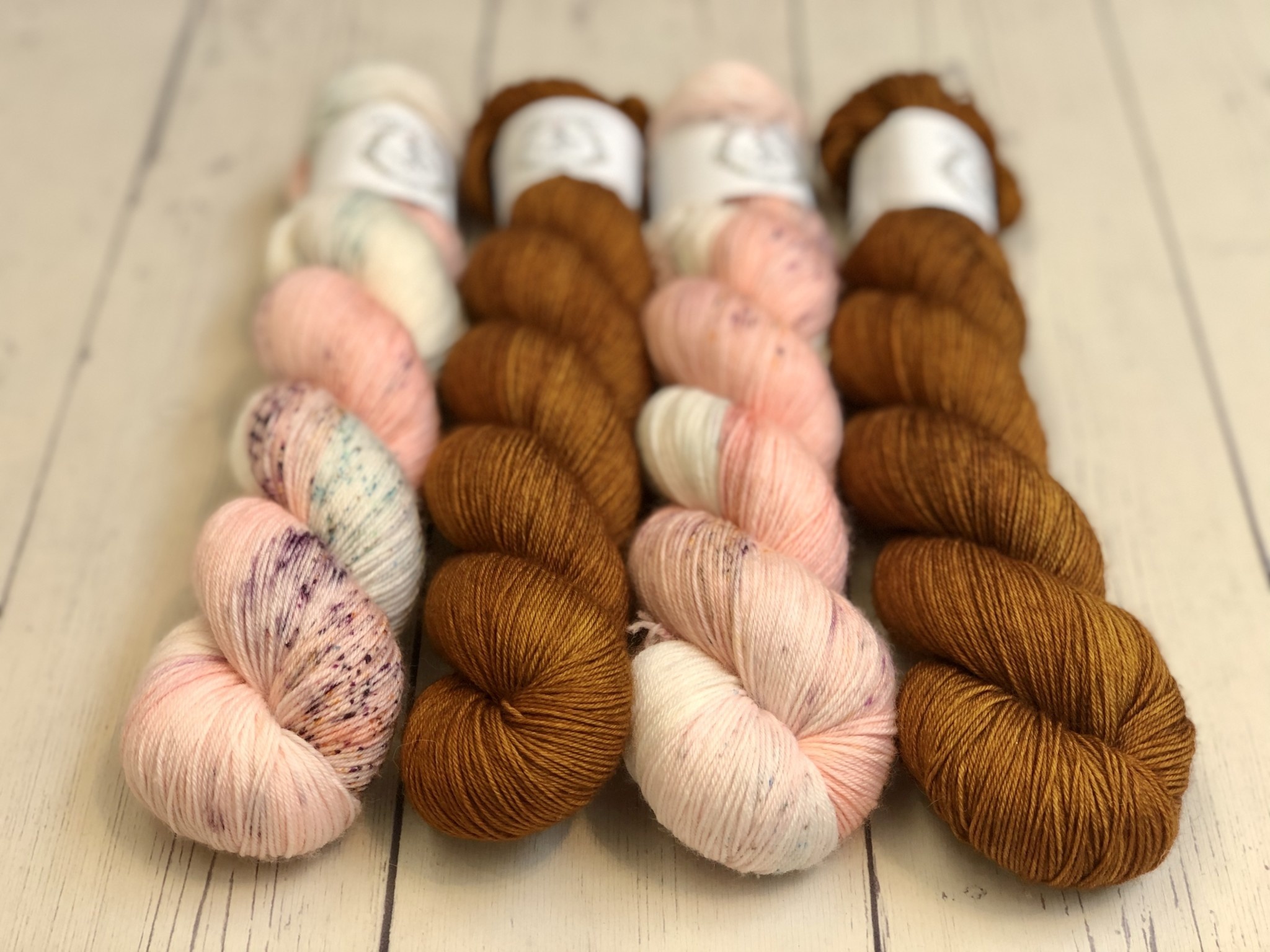 - Two skeins La Bien Aimée Merino Super Sock in Caramel