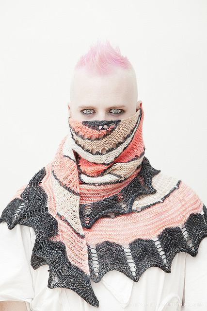This top down semi-circle shawl begins with Stephen's favourite Westknits shortcut rows and yarn overs followed by two-colour brioche ribbing, slipped stitches, stripes, and finally a beautiful chevron border.