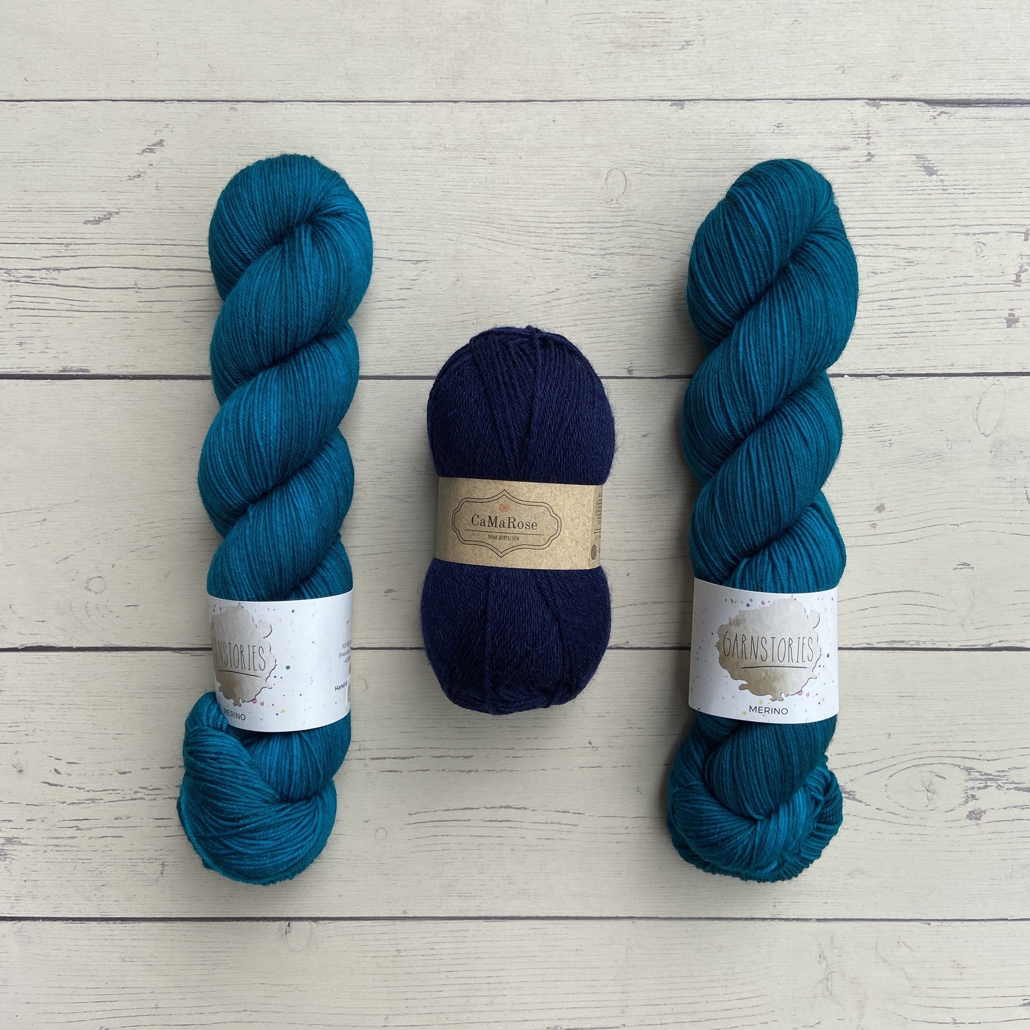 These 250g kits provide enough yarn for the full size shawl, and are inspired by the sample shown on the pattern page here.