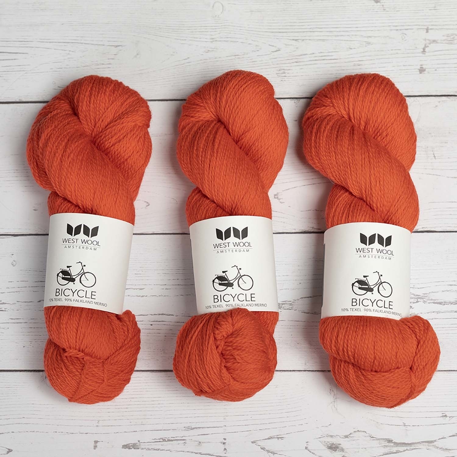 This 2-ply fingering weight wool is perfect for use with lace and garter stitch. Beatrix is a bright coral influenced orange.