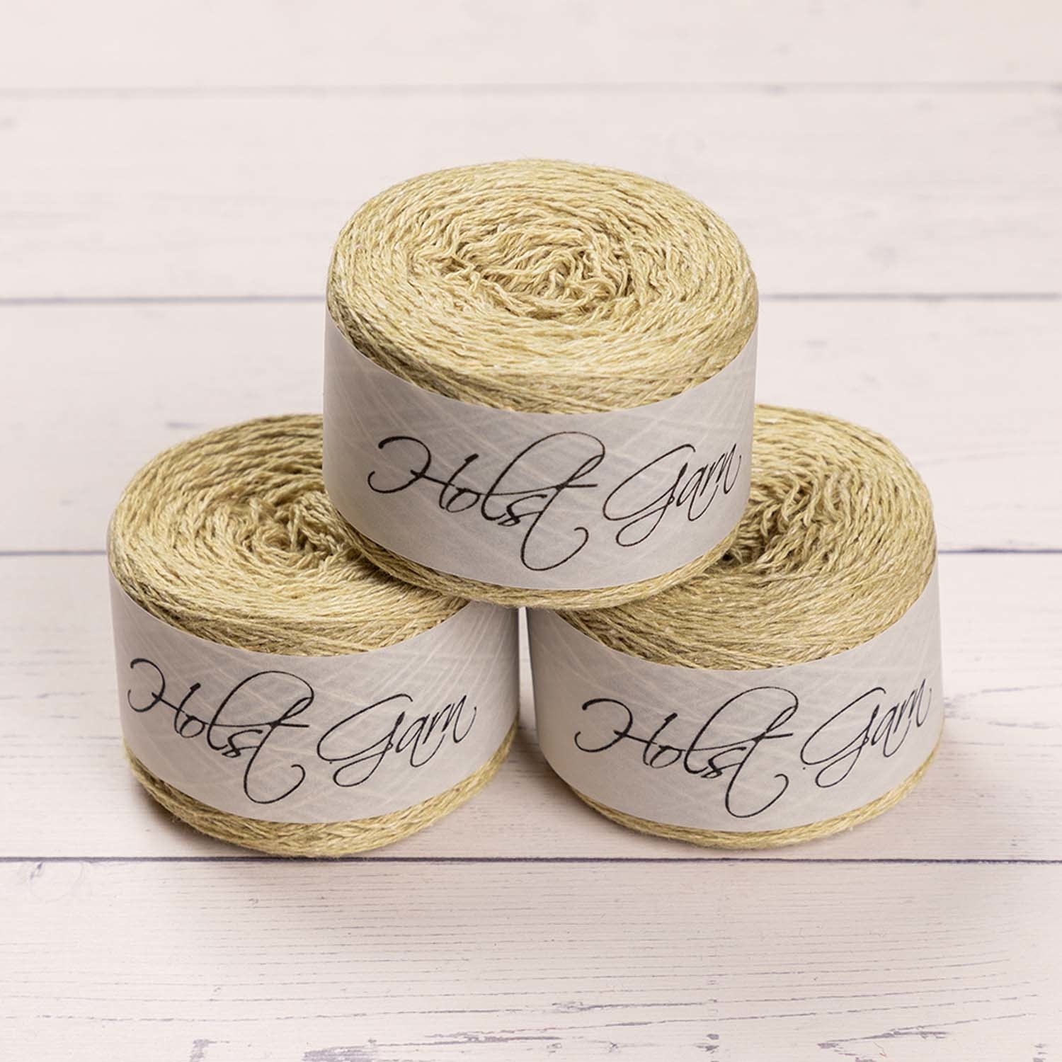 Holst Garn Coast contains a bit of spinning oil and excess dye, these will disappear with the first wash, and the yarn will bloom and become very soft.