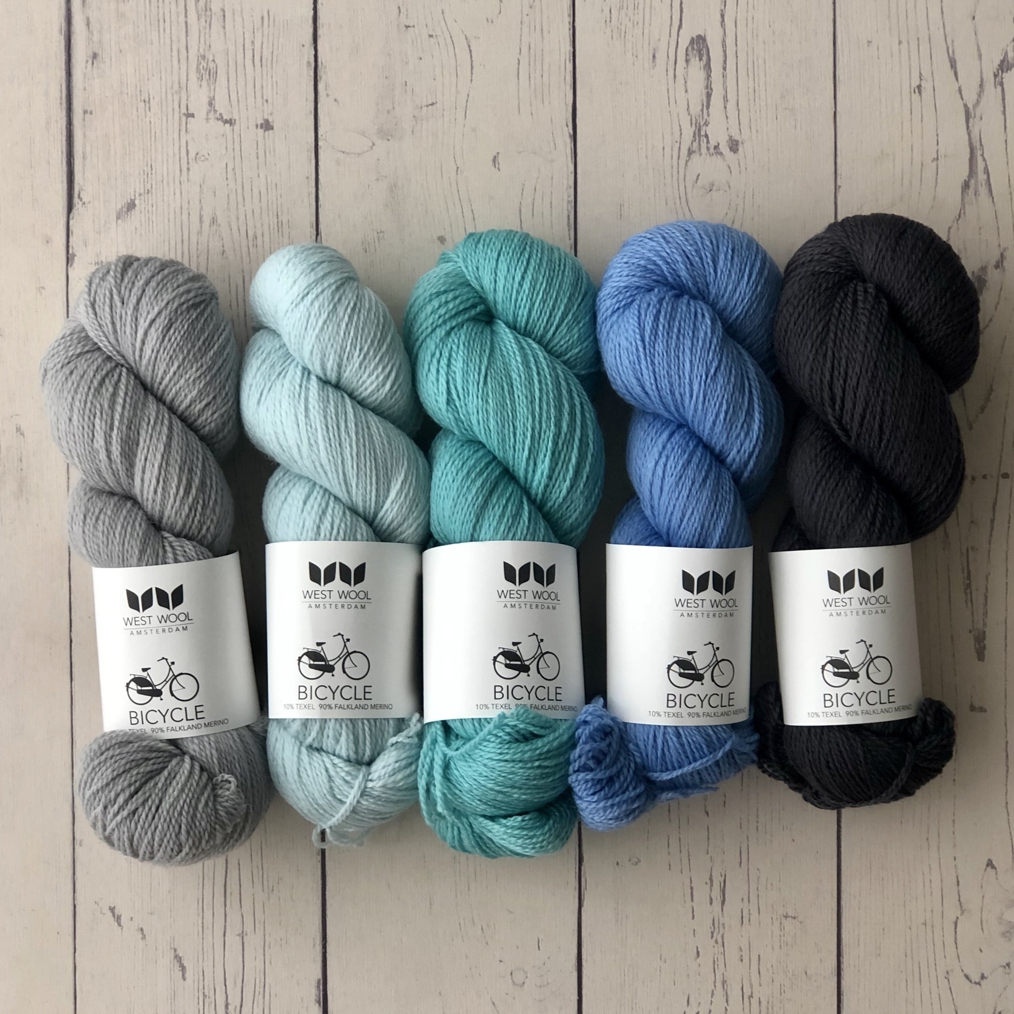 This “Contrast Quint” kit from Stephen & Penelope was selected to work well with multiple five skein Westknits patterns, including the Cozy Corner Shawl, Triangle Parade, large Vertices Unite, and more!