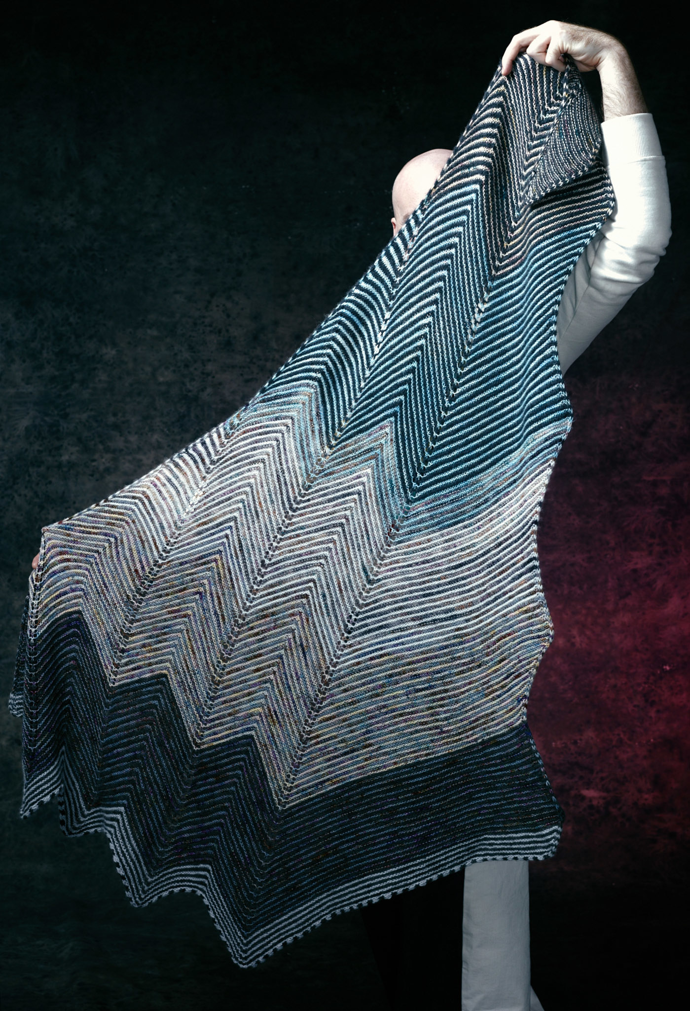 Five skeins yield a large cosy shlanket (shawl + blanket) to keep you stylish and warm.