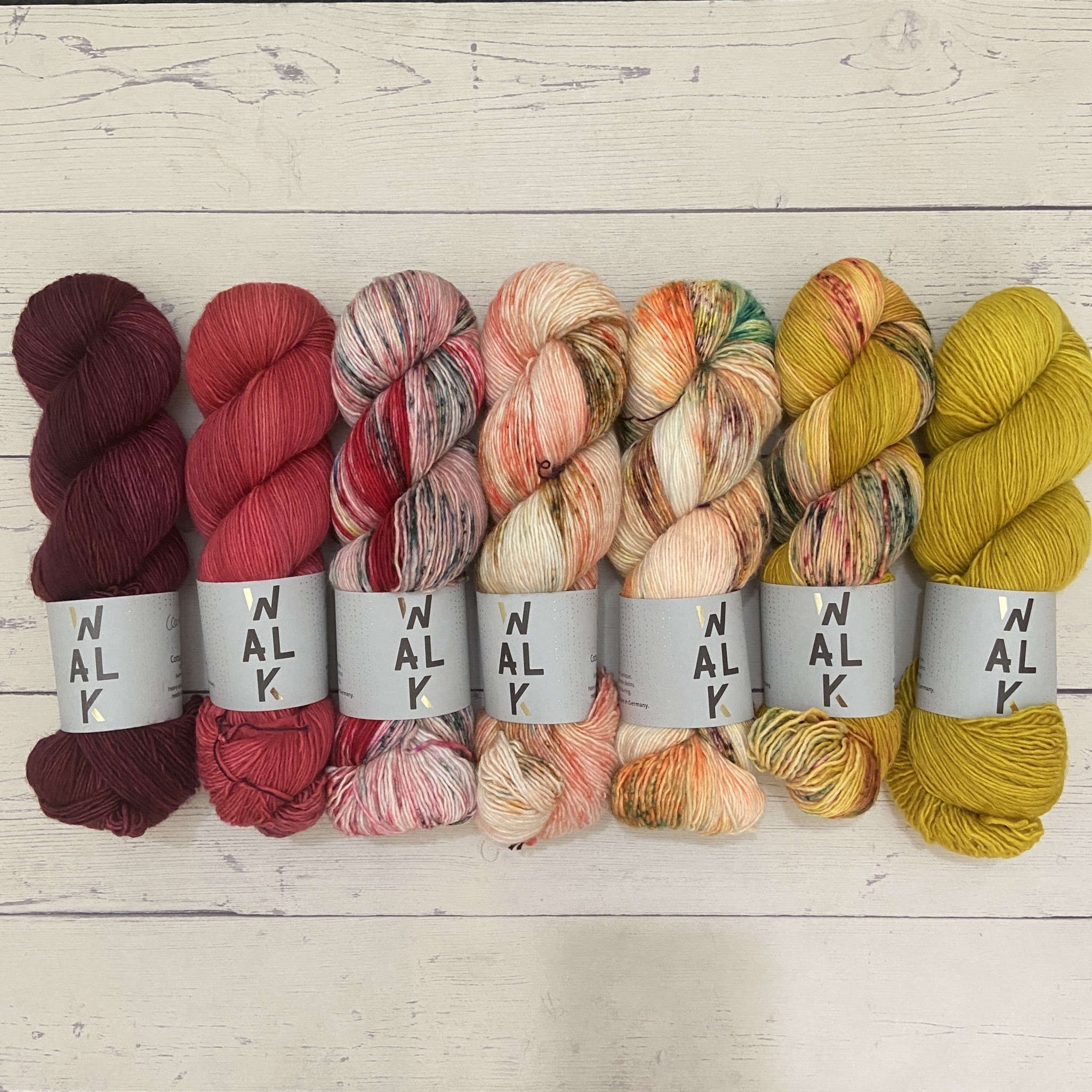 These seven skein kits provide all the yarn you need for this generous sized shawl. The colours selected are inspired by the main sample shown on the pattern page here.