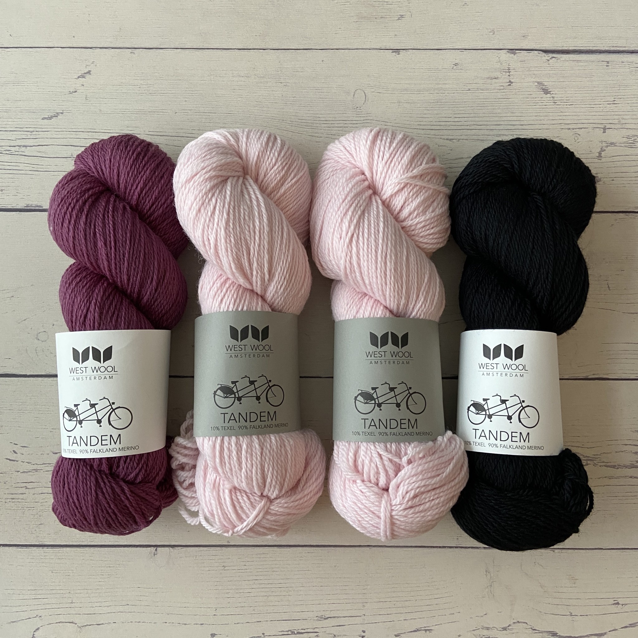 - Two skeins West Wool Tandem in Powder