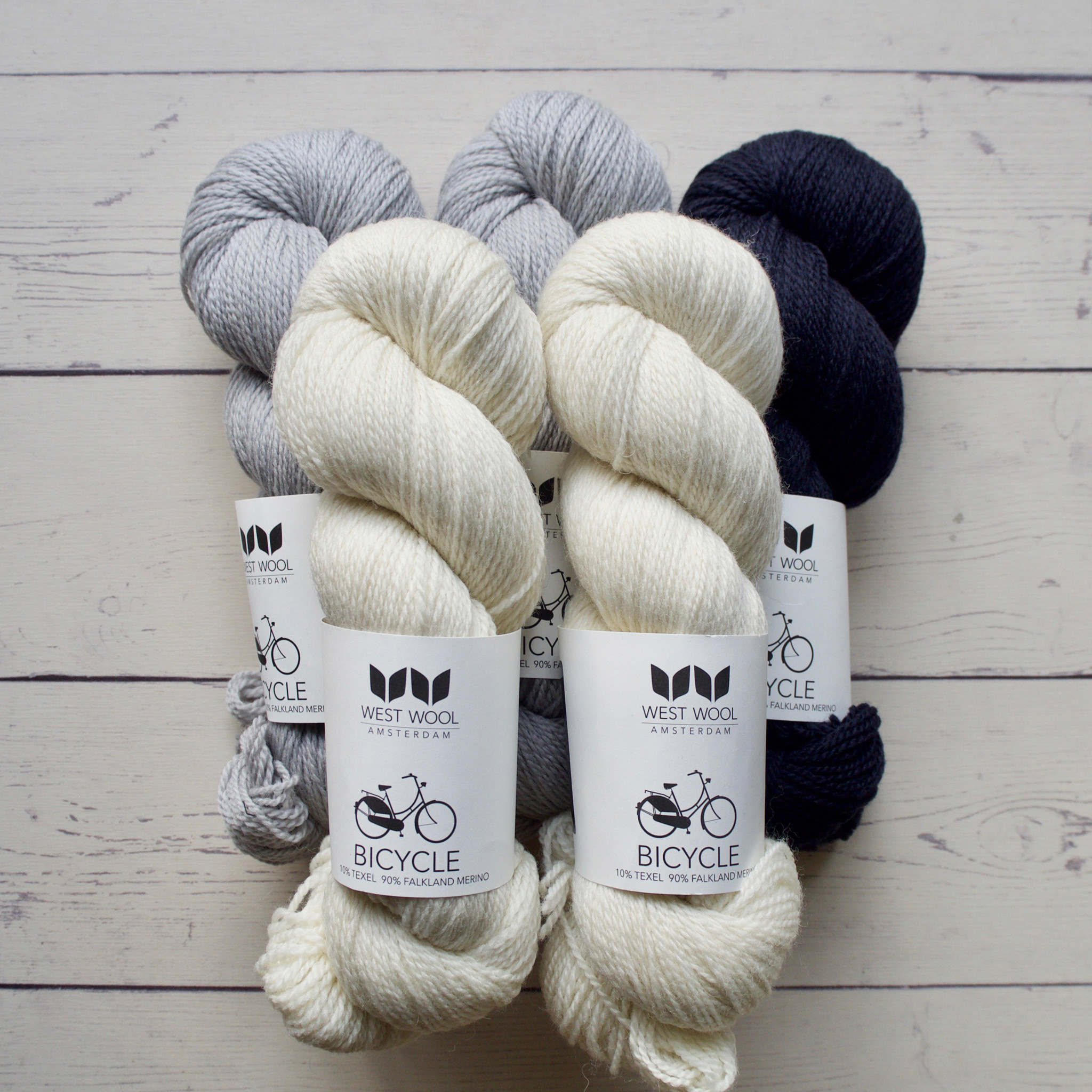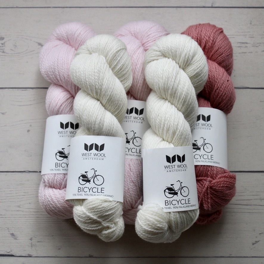 - Two skeins West Wool Bicycle in Powder