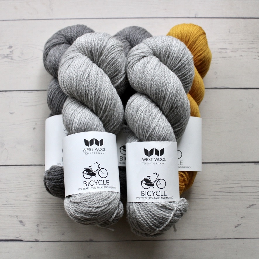 - Two skeins West Wool Bicycle in French Grey