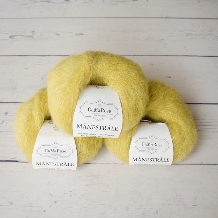 Danish based CaMaRose brings us a touch of sparkle with this fuzzy accent yarn! We recommend holding together with a fingering weight yarn such as CaMaRose Yaku.