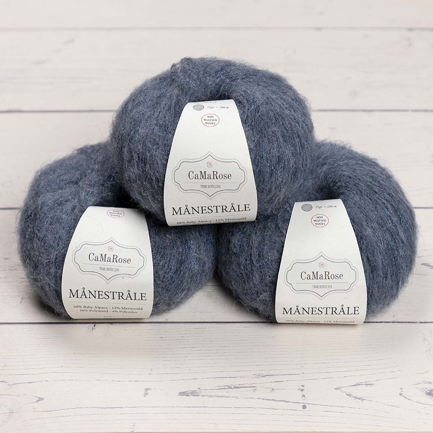 Danish based CaMaRose brings us a touch of sparkle with this fuzzy accent yarn! We recommend holding together with a fingering weight yarn such as CaMaRose Yaku.