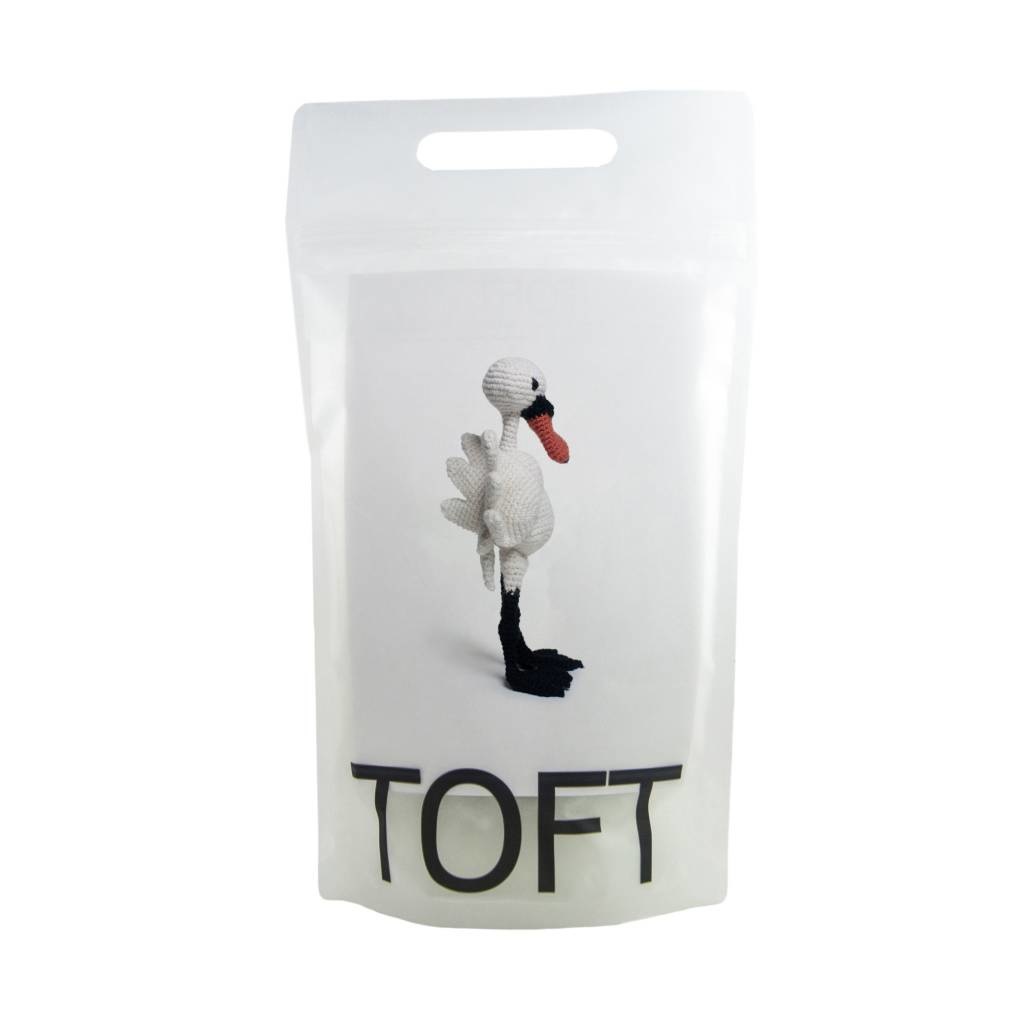 THIS KIT CONTAINS: 50g of DK yarn in 'Cream', 25g of DK yarn in 'Black', 25g of DK yarn in 'Orange', toy stuffing, 3mm crochet hook, wool needle, and a postcard pattern inside a reusable TOFT project bag.
