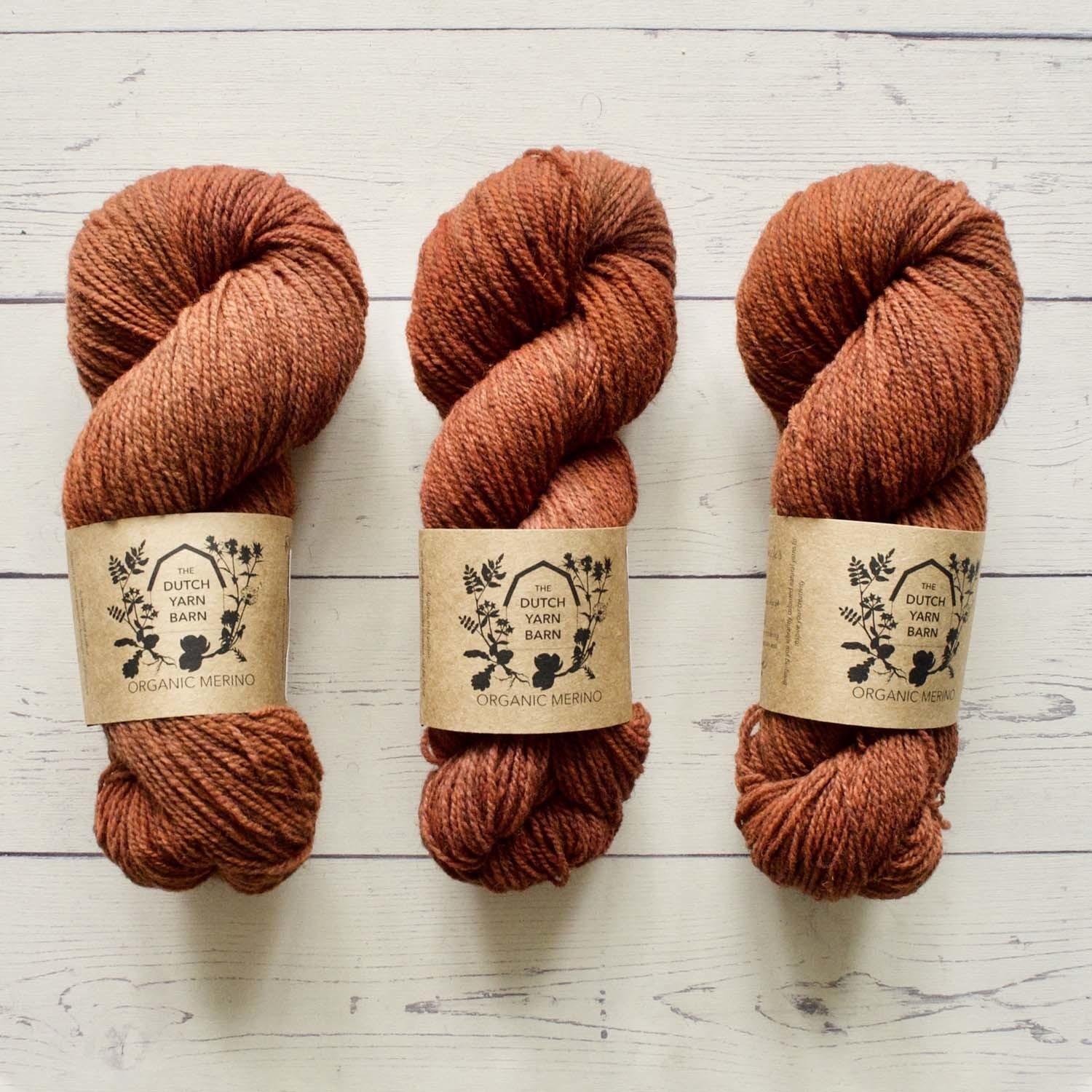 This beautifully rustic Certified Organic Merino is naturally dyed here in the Netherlands with Merino ethically and sustainably sourced from Germany. Lovely for garments such as sweaters and cardigans, this sport weight yarn is versatile with a midfine softness.