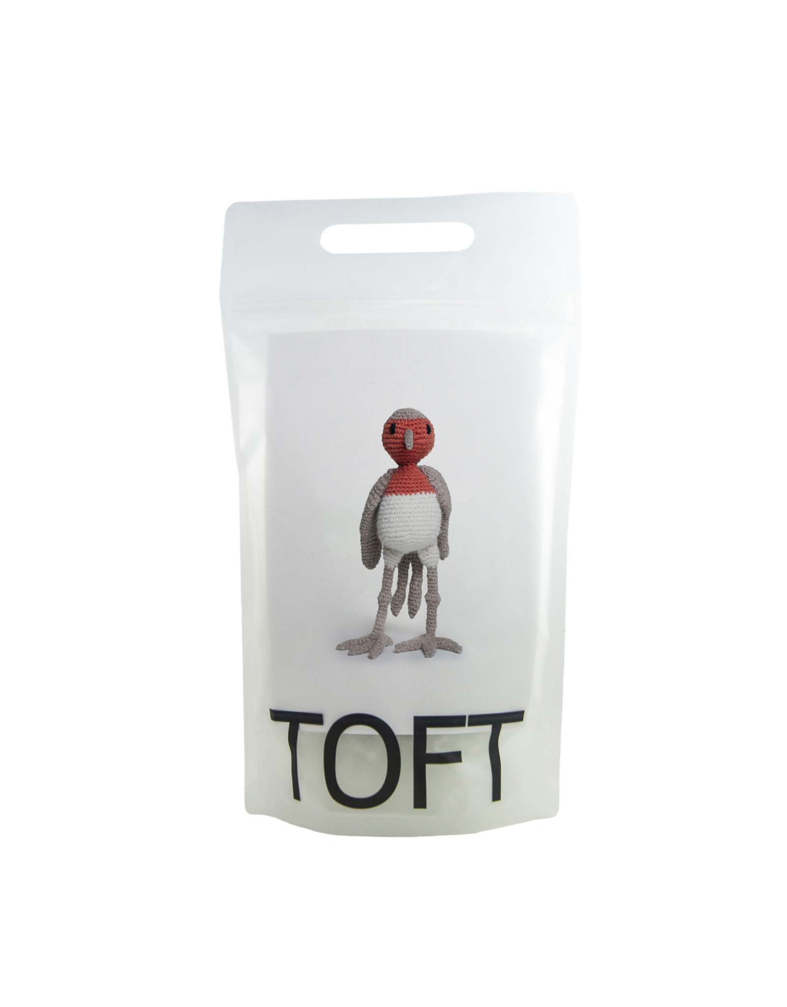 THIS KIT CONTAINS: 25g of DK yarn in 'Cream', 50g of DK yarn in 'Stone', 25g of DK yarn in 'Orange', toy stuffing, 3mm crochet hook, wool needle, and a postcard pattern inside a reusable TOFT project bag.
