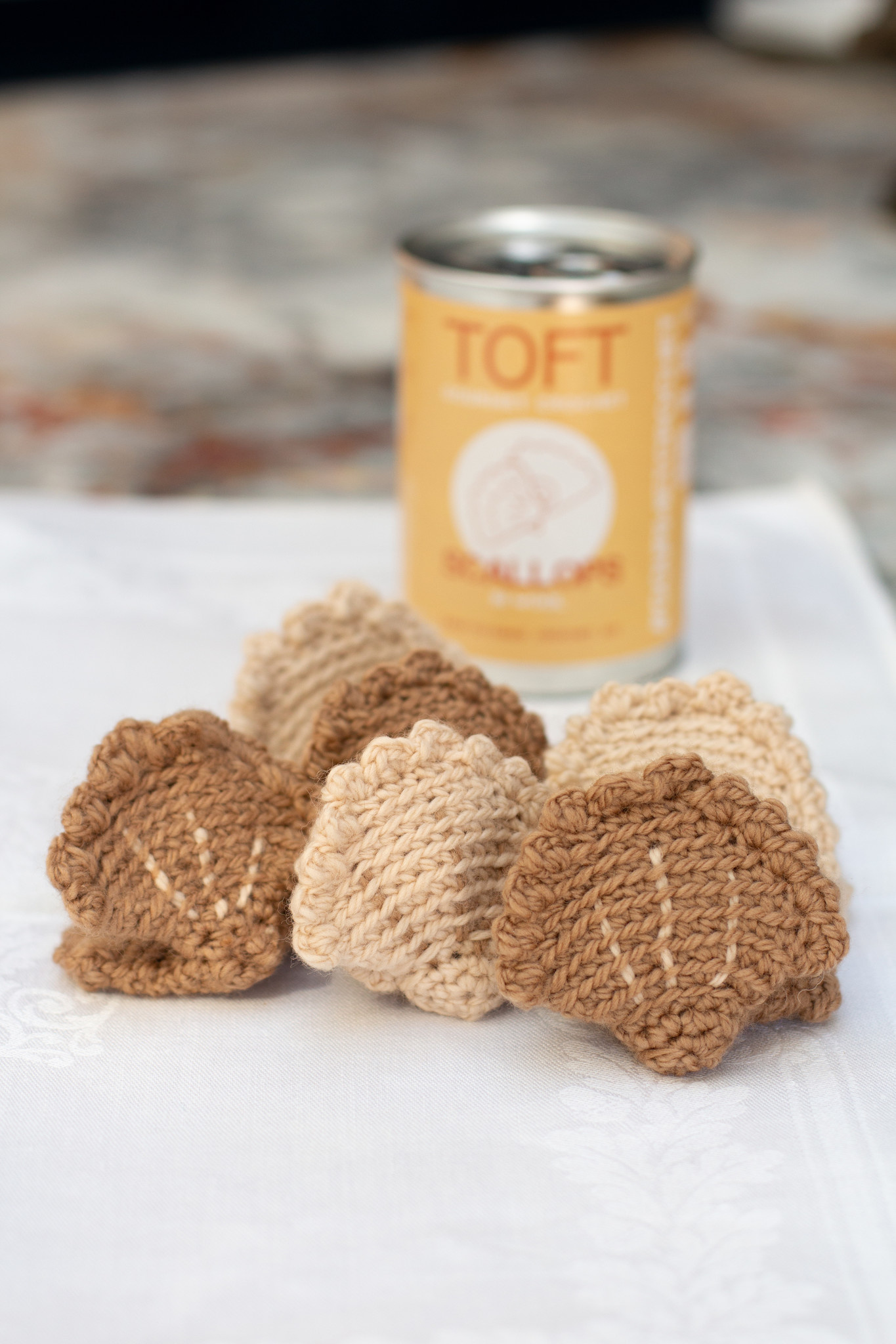 THIS KIT CONTAINS: 25g of DK yarn in ‘Oatmeal’ and 25g of DK yarn in ‘Camel’. The crochet pattern recipe card is inside the tin.
