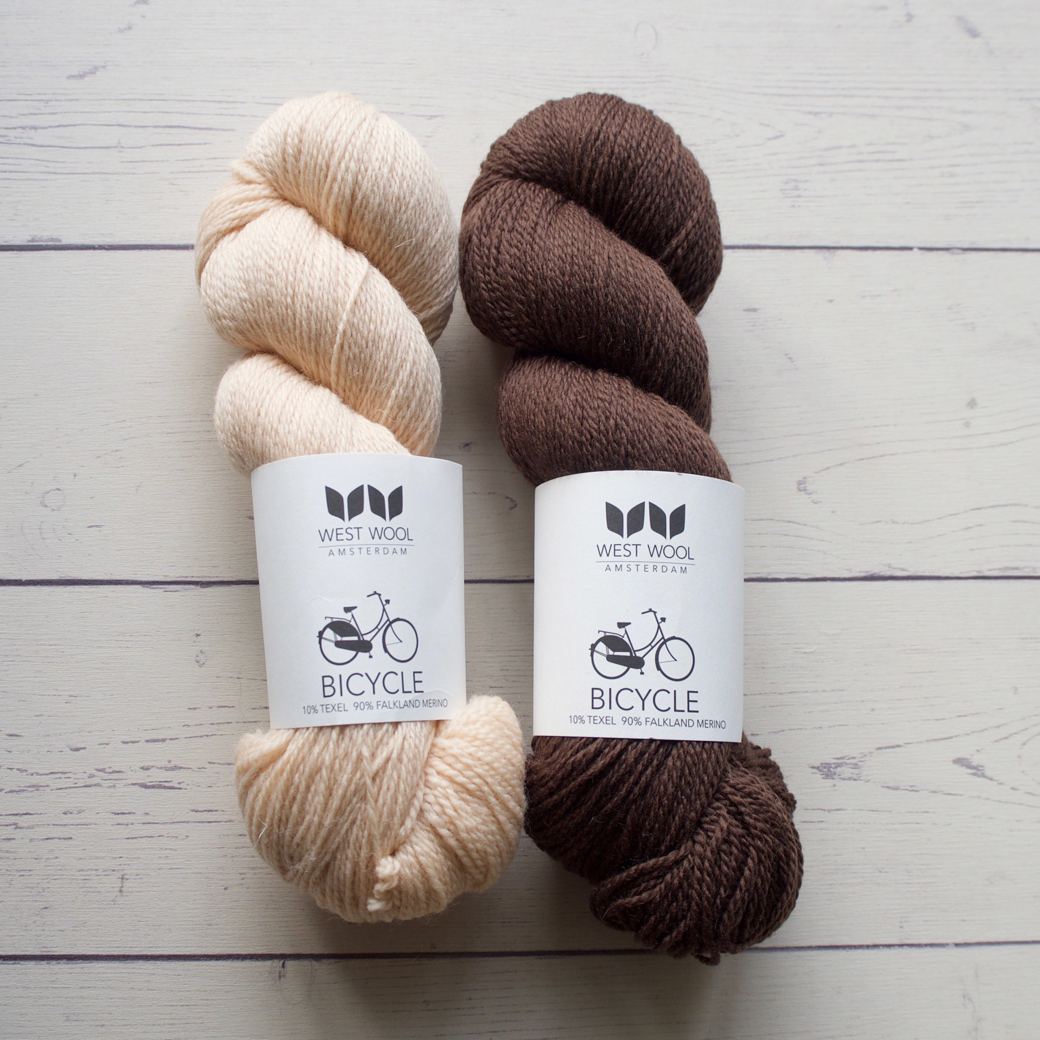 This two skein set provides enough yarn for this cute shawl in either the original yarns of the blue sample, or our interpretation of the brown sample, with full pattern details here. Interested in different colours for your Stitch Trio Shawl? Check out the full selection of WEST WOOL BICYCLE to find your perfect palette!