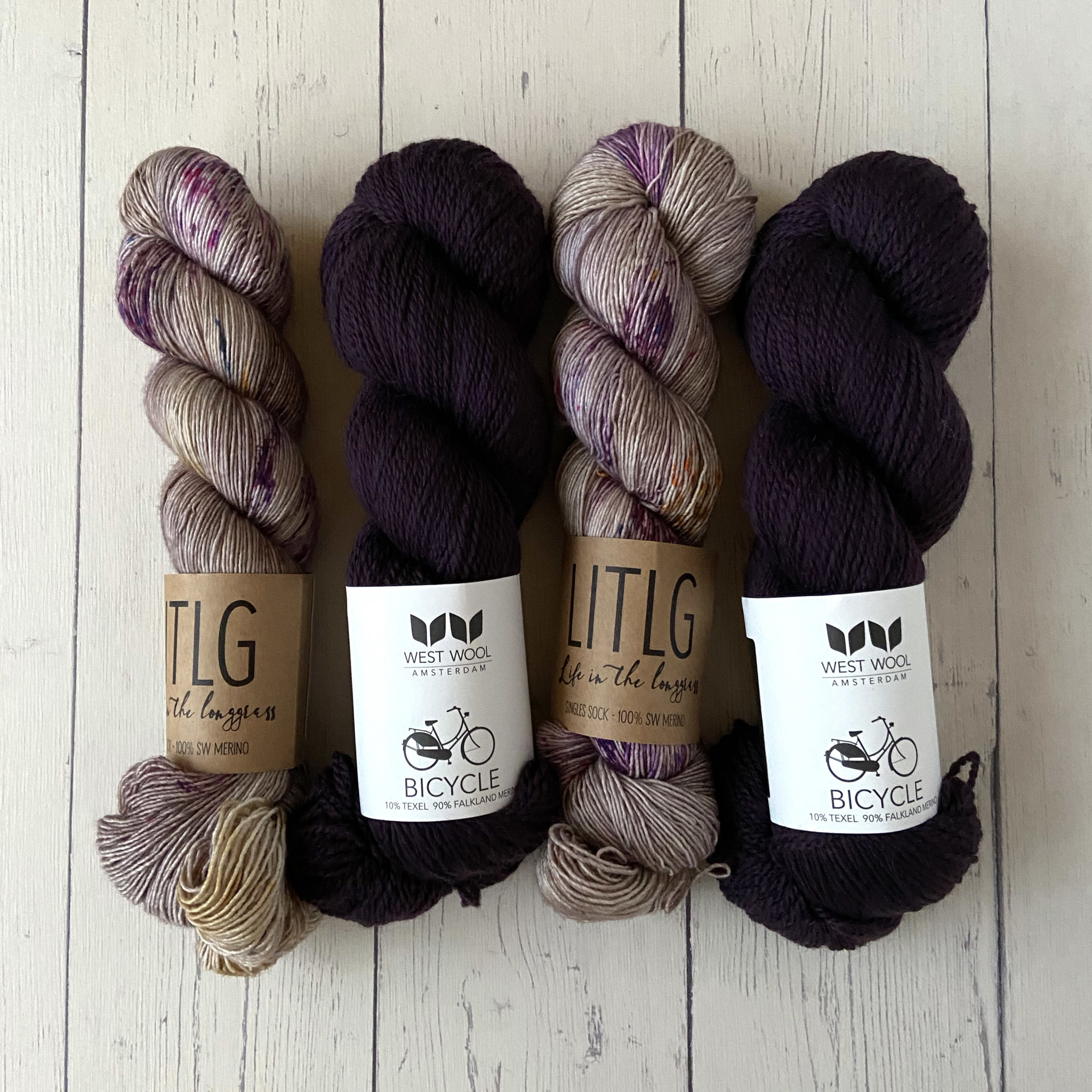 The textural contrast of woolly West Wool Bicycle with buttery single plied merino adds visual impact to your final project.