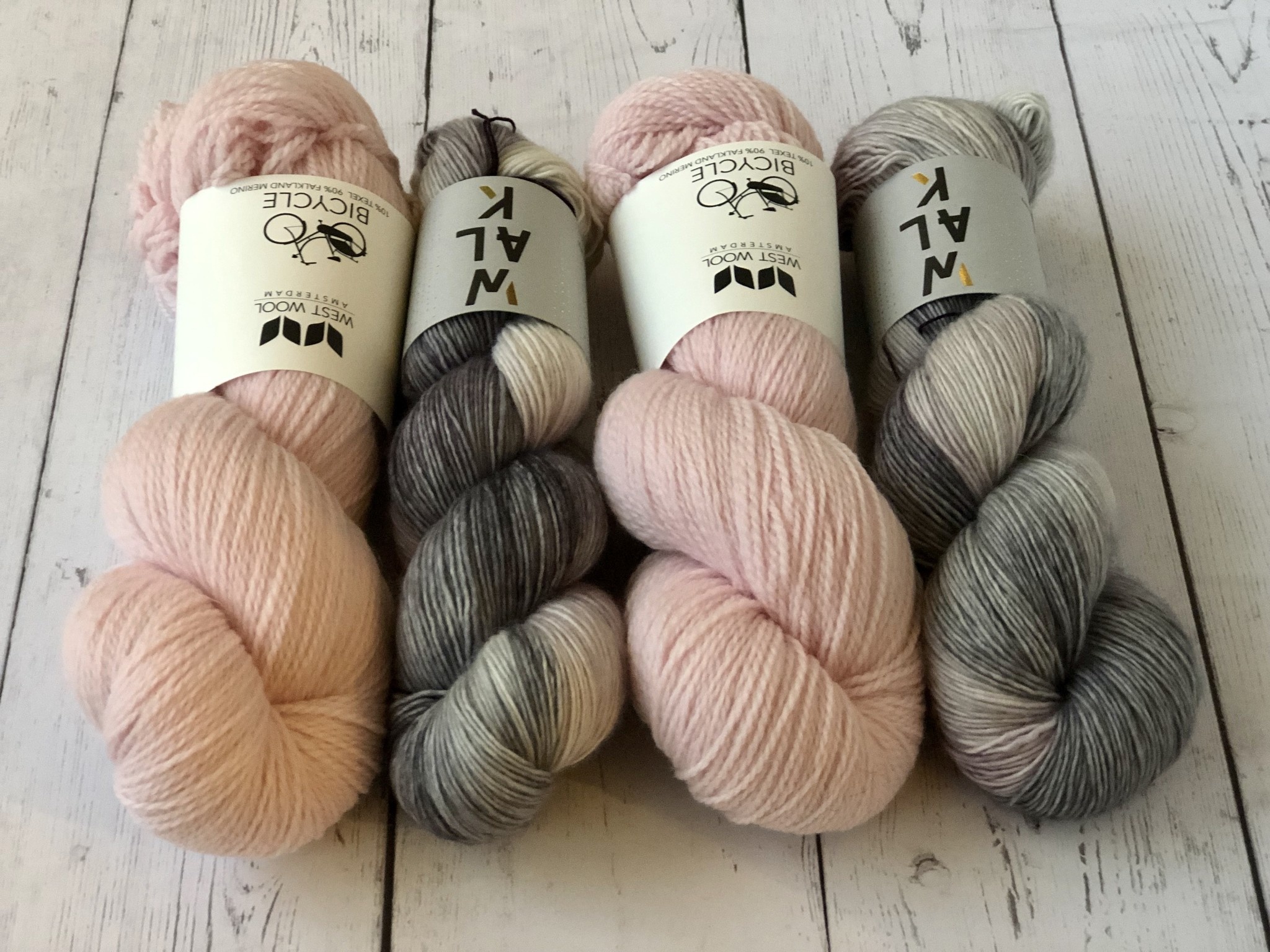 - Two skeins West Wool Bicycle in Powder