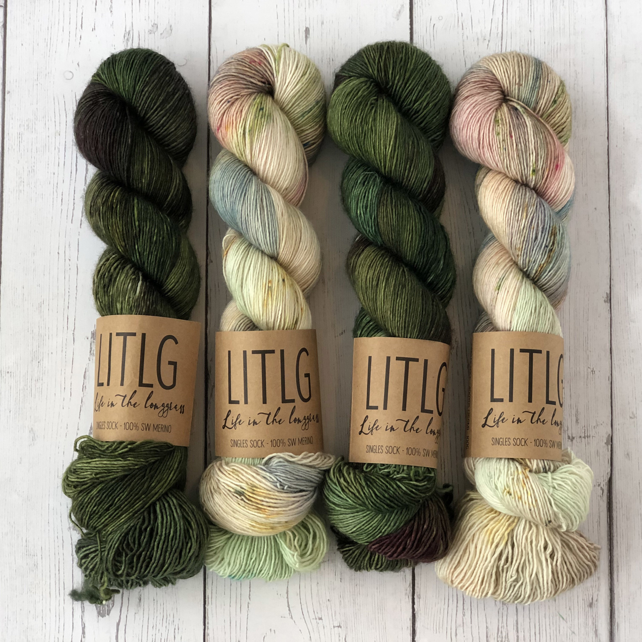This “Two Plus Two” kit from Stephen & Penelope was selected to work well with multiple four skein Westknits patterns, including Mosaic Musings, Tree Fern, Rockefeller, Chrysler, Starflake, and Wonky Starfish.