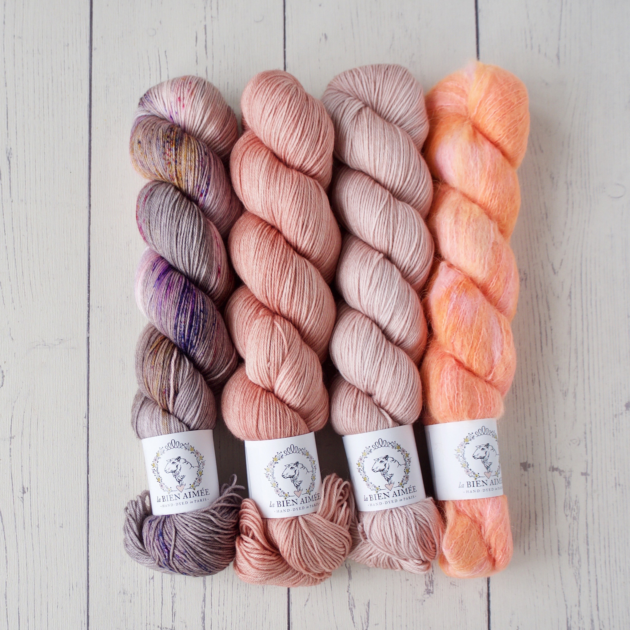 - One skein La Bien Aimée Merino Super Sock in Souvenir