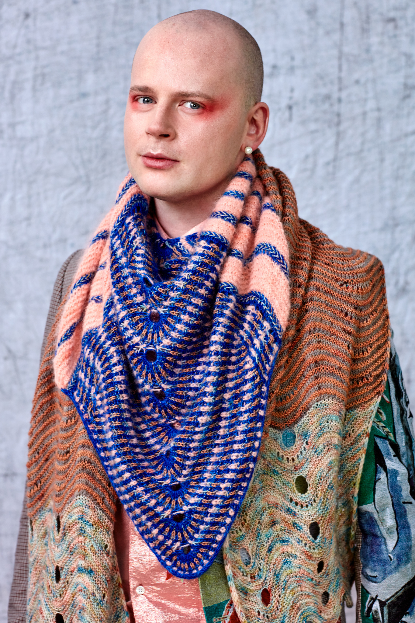 Texture Time was originally published as the ninth annual Westknits Mystery Shawl KAL in 2018. This large shawl begins in the centre with a brioche or moss stitch option. Short row squiggles expand the shape outward with Latvian braids. Wavy wings create a long length that drapes beautifully over the shoulders. An optional bubble border completes this statement piece. The pattern is written for five colours with a recommended fluffy suri yarn as one of the colours combined with fingering weight wool.