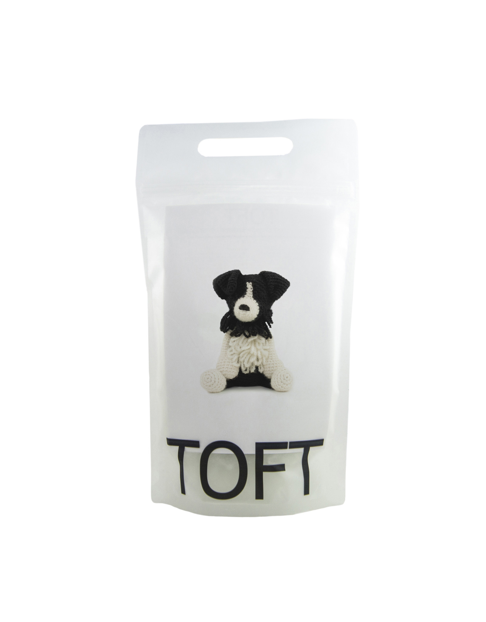 THIS KIT CONTAINS: 75g of DK yarn in 'Black' and 25g in 'Cream', toy stuffing, 3mm crochet hook, wool needle, and a postcard pattern inside a reusable TOFT project bag.