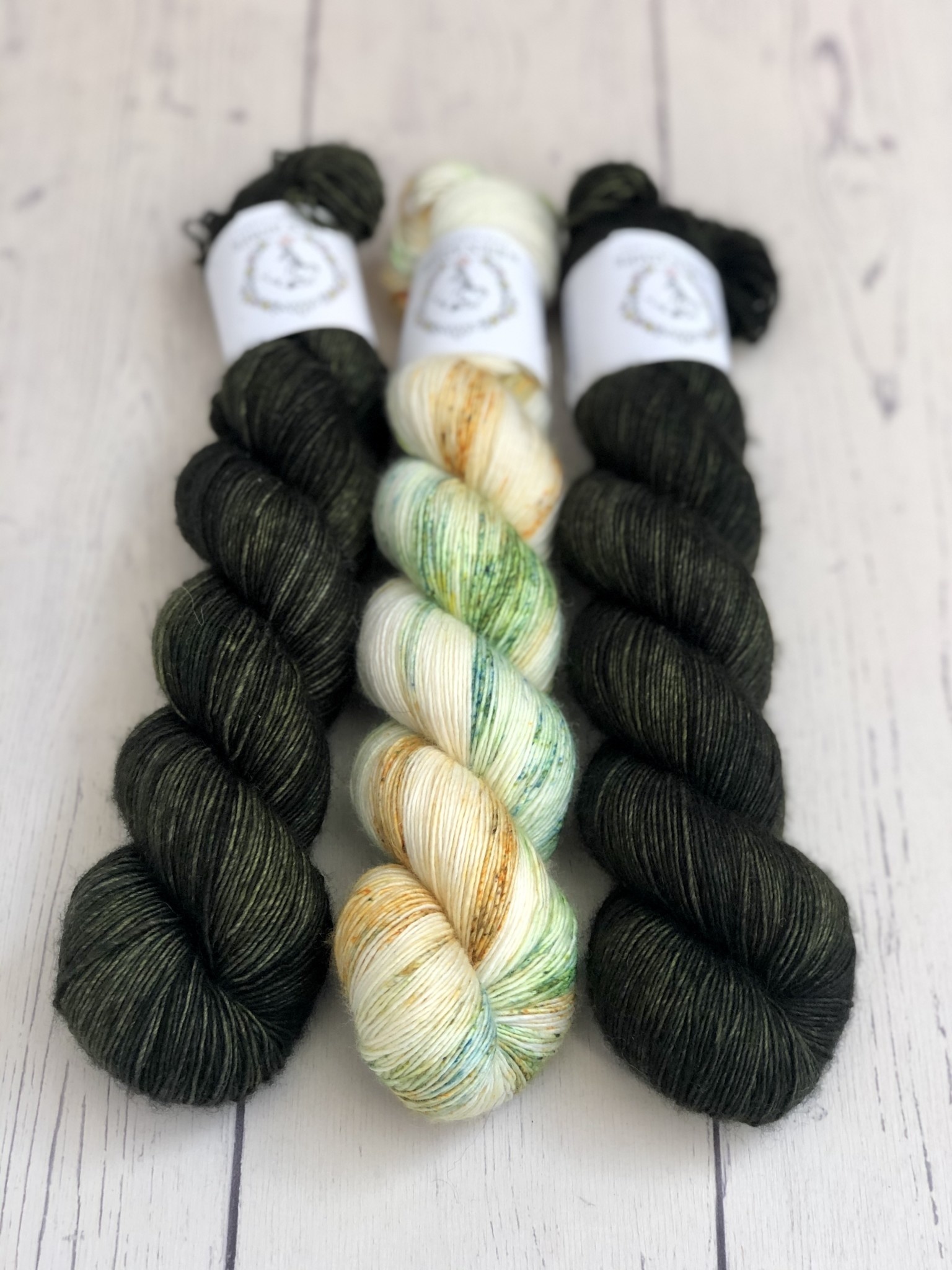 - Two skeins La Bien Aimée Merino Singles in Porter