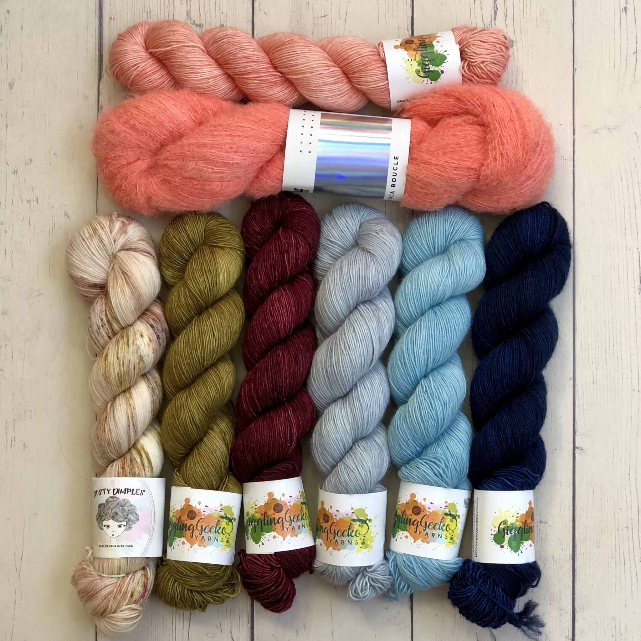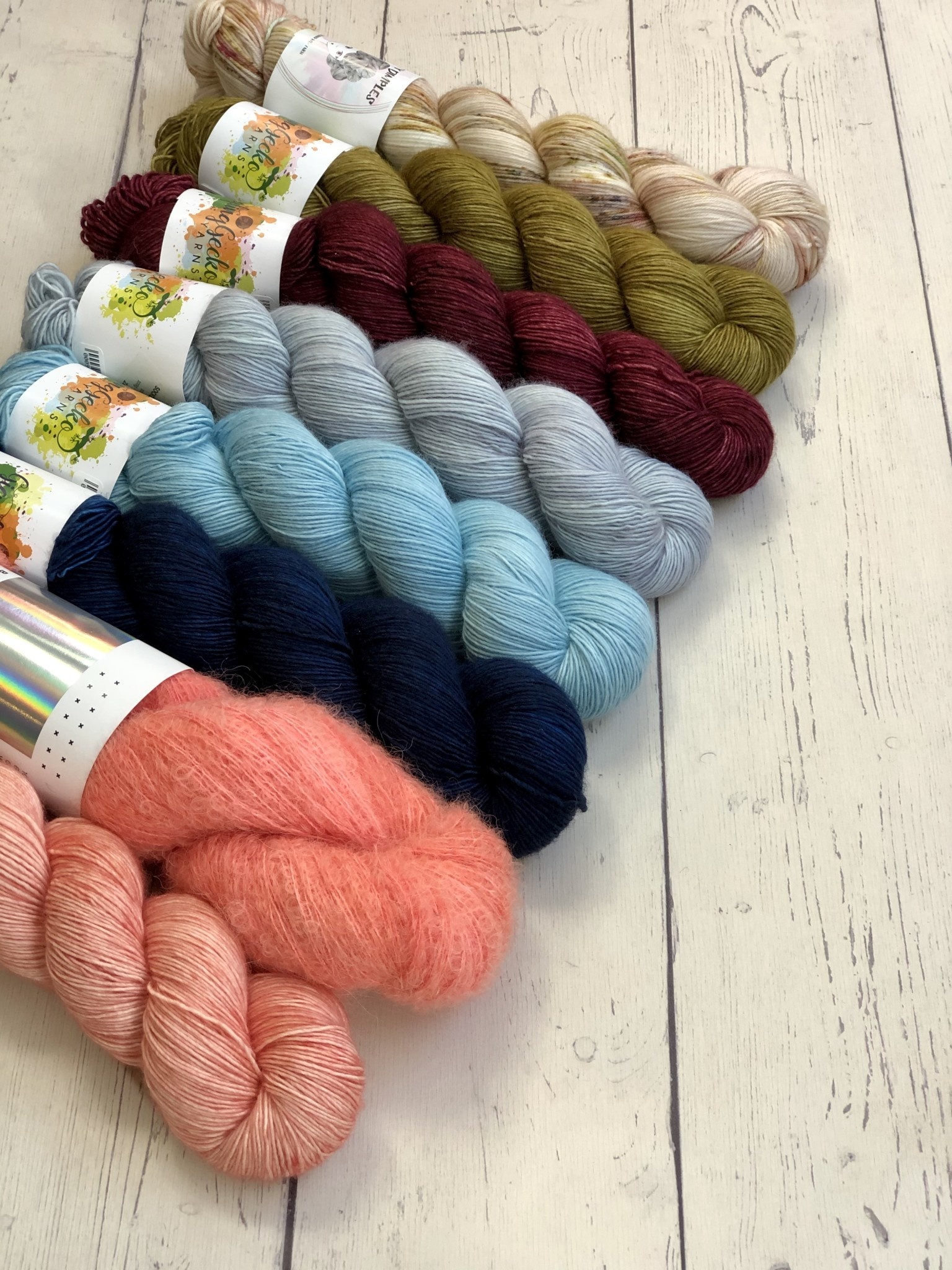 - One skein Dusty Dimples Sock in Cynefin (colour A)