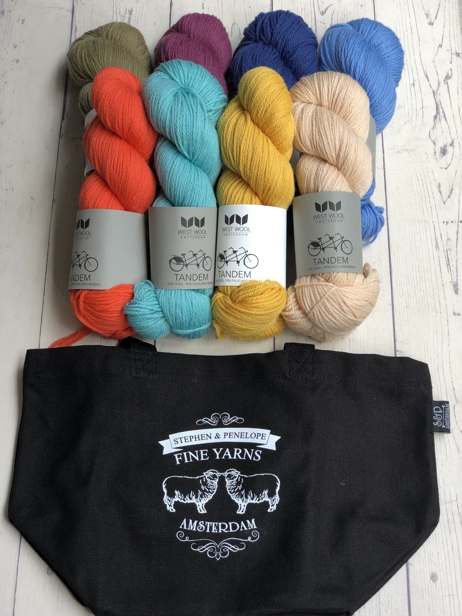 You will need 4 [4, 4, 5, 5, 5, 6, 6, 6] skeins of the Main Colour in West Wool Tandem or a comparable DK weight yarn combined with your contrast colour kit. These kits are only for the contrasting brick colour pops.
